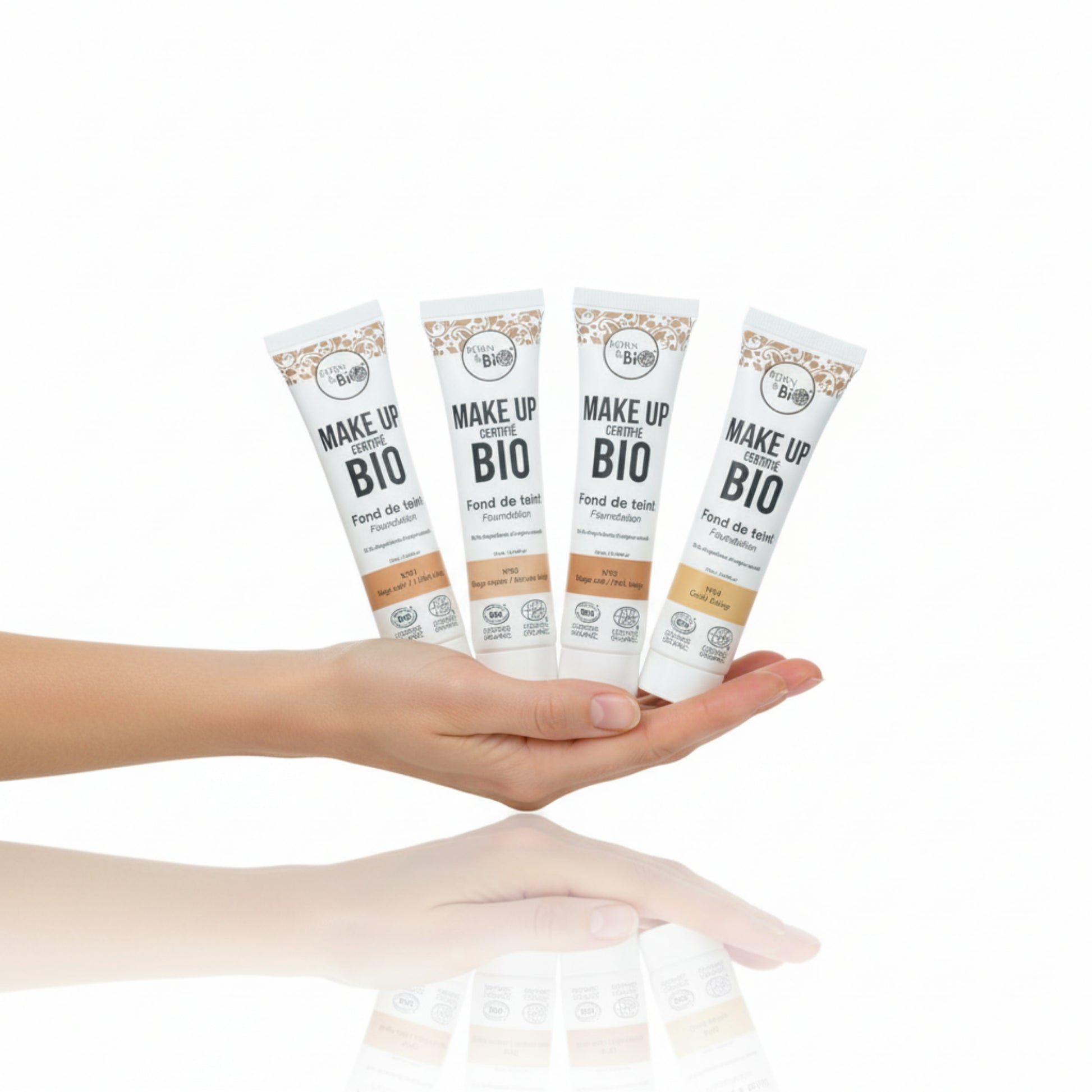 استمتعي ببشرة موحّدة ومتألّقة من أول تطبيق مع كريم الأساس العضوي من بورن تو بيو!