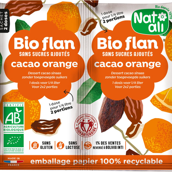 اكتشف المذاق الرائع لحلى فلان العضوي بالشوكولا والبرتقال ، وهو مزيج حلوى عضوي خالٍ من السكر والغلوتين واللاكتوز . معتمد من Ecocert Greenlife، هذه الحلى سريع التحضير بنكهة السوكولا والبرتقال مثالية لأولئك الذين يبحثون عن خيار حلوى صحي وصديق للبيئة.
