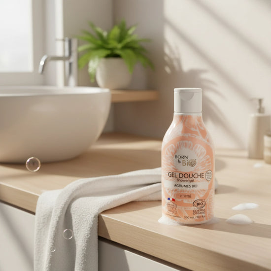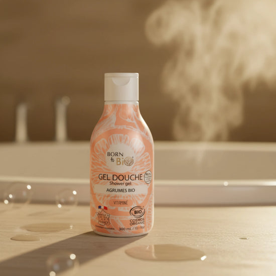 ابدئي صباحكِ بانتعاش طبيعي مع جل الاستحمام بالحمضيات من بورن تو بيو – لمسة من النضارة الفرنسية والعناية العضوية النقية.
