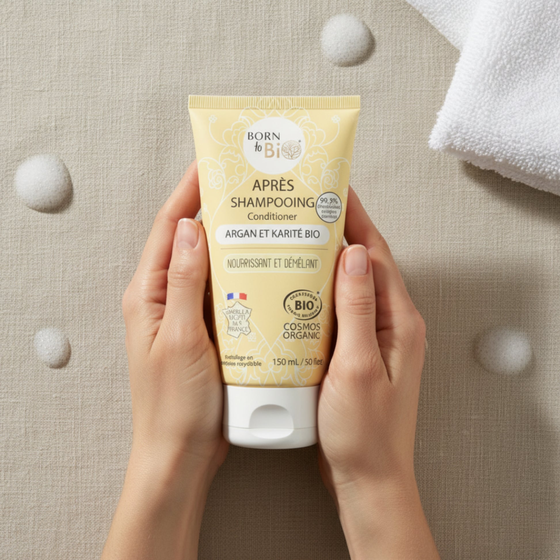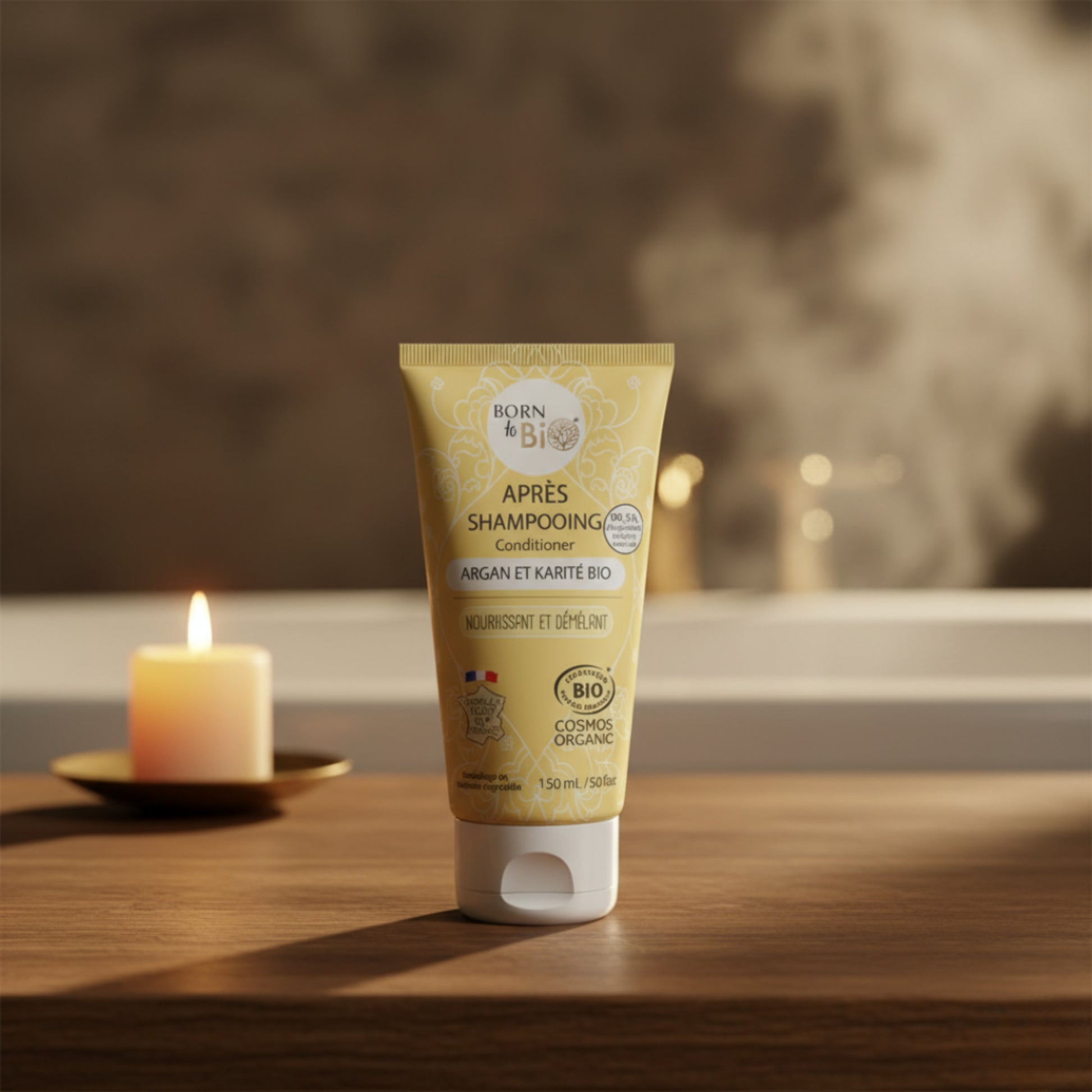 What makes this conditioner stand out is its ability to deliver salon-level smoothness through nature alone. Unlike conventional formulas that rely on silicone for temporary shine, this blend restores true health and softness to the hair. The creamy texture envelops each strand without coating it, bringing a natural, flowing movement that lasts. Its scent — light, warm, and comforting — evokes a sense of calm and care every time you use it. Crafted in Vichy, France, this formula reflects Born to Bio’s commitment to authentic beauty: clean, effective, and built on the intelligence of organic ingredients.