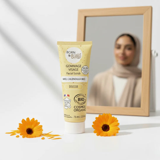 Reveal your skin’s natural beauty with our Certified Organic Calendula Honey Face Scrub. Specially designed for sensitive skin, this 100% organic and biodegradable formula gently exfoliates, cleanses, and revitalises your skin.