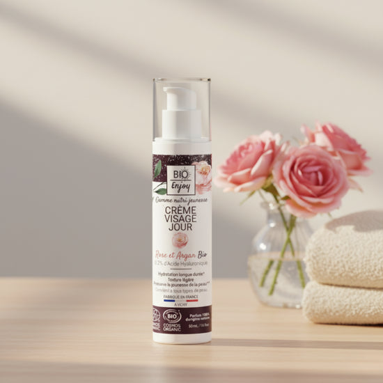 Bring your skin back to life every morning with the Organic Rose & Argan Day Cream, a certified organic formula crafted in Vichy, France. Designed with 0.2% hyaluronic acid, organic argan oil, and rose water, it deeply hydrates, smooths, and restores your natural glow. Its light, silky texture absorbs quickly without greasiness, leaving your skin fresh, soft, and luminous all day.