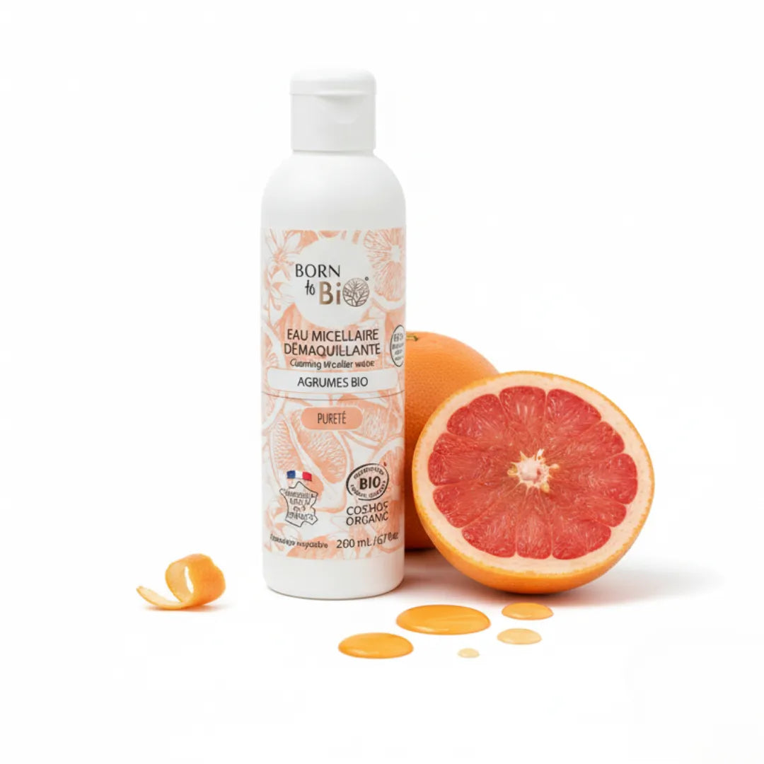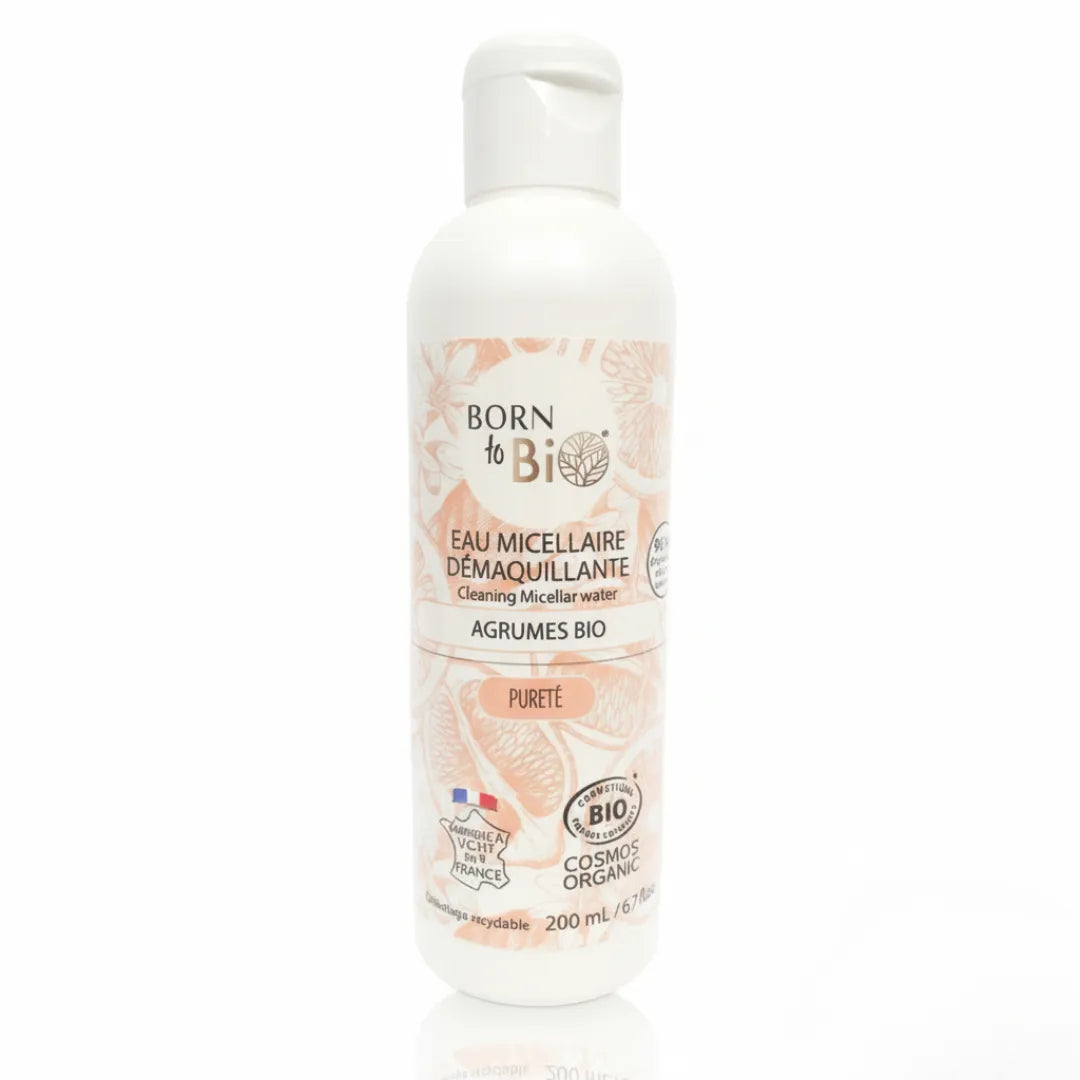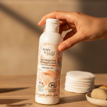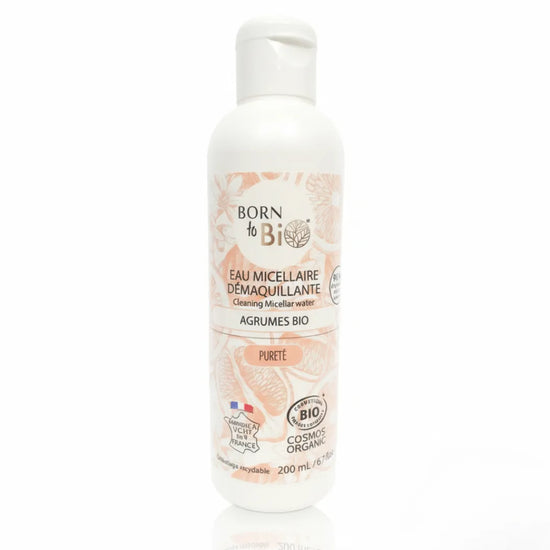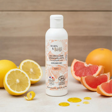 Discover certified organic Citrus Micellar Cleansing Water, a true source of freshness for the face. In a single step, this gentle, revitalizing micellar water effectively cleanses the skin, restoring radiance and luminosity while regulating sebum production. Its formula is based on organically grown ingredients, guaranteeing optimum respect for the skin. Perfectly suited to combination to oily skin, this purifying micellar water offers gentle, pleasant facial care. Presented in a recyclable 200 ml bottle, this no-rinse solution can be used all over the face, including the eyes, for clean, refreshed skin.