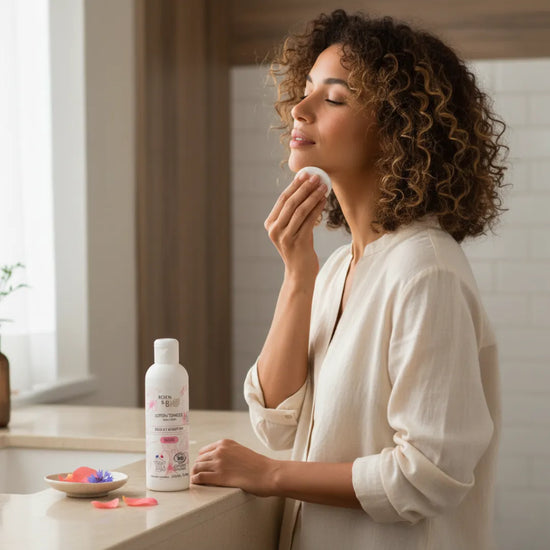 This Certified Organic Toner with Rose and Cornflower Floral Waters refreshes, rebalances, and softens the skin while sweeping away residue. Alcohol-free and delicately scented, it preps your skin for serum and cream—leaving a calm, silky glow after every use 💧